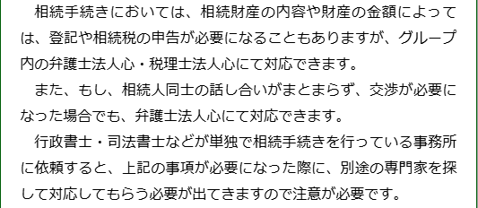 また、行政書士では対応できない手続きが含まれる場合でも、司法書士・弁護士・税理士などと連携して対応する体制を整えている事務所も多くあります。