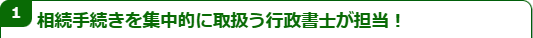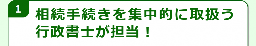 相続手続きを集中的に取り扱い、手続きの正確性や処理スピードを磨き続ける行政書士の在籍をはじめとした、強みをご紹介しております。どうぞご覧ください。