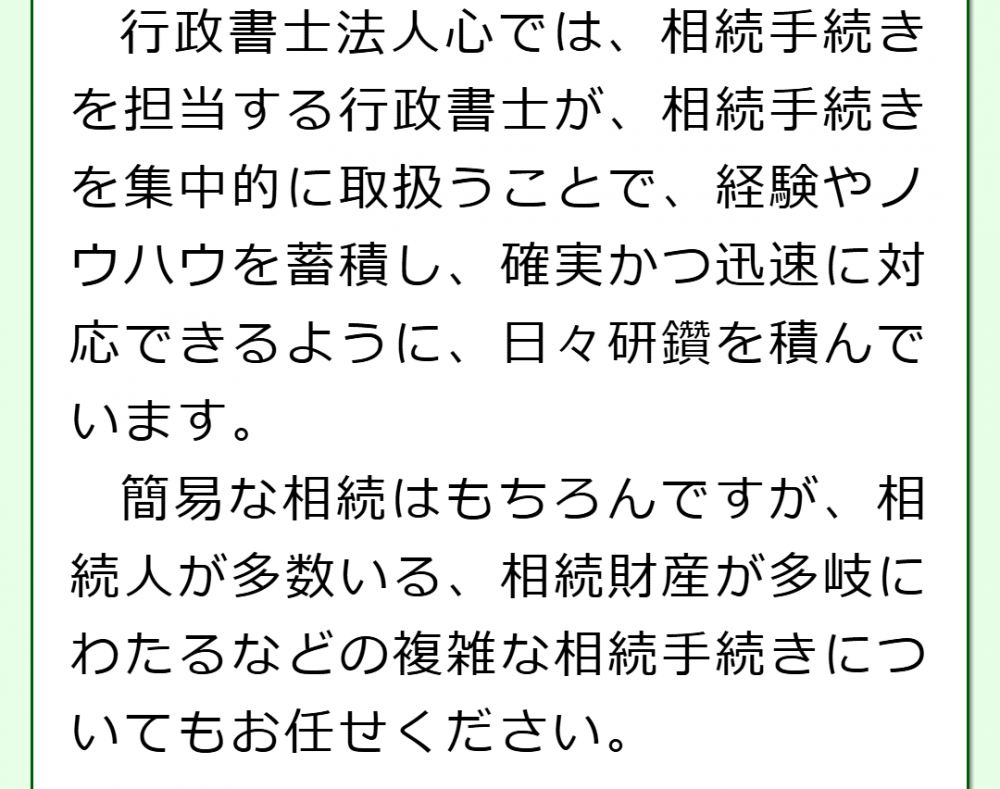 相続の専門知識がありますので、正確でスピーディーな手続きを期待していただけます。