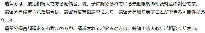 トップ業務内容遺留分侵害額請求 階層構造▼ 業務内容(目次) 遺留分侵害額請求 業務内容(目次)業務内容トップ行政書士法人心の業務内容遺言遺産整理相続人調査相続財産調査遺産分割協議書の作成預金・貯金の解約・名義変更証券口座の解約・名義変更自動車の名義変更心グループのその他の業務内容家族信託・民事信託節税対策事業承継遺言の検認相続放棄限定承認遺産分割遺留分侵害額請求相続登記相続税申告相続税調査 受付時間 平日 9時~21時、土日祝 9時~18時 夜間・土日祝の相談も対応します (要予約) 所在地 〒210-0006 神奈川県川崎市川崎区砂子1-7-4砂子平沼ビル5F 0120-2403-39 お問合せ・アクセス・地図