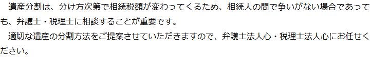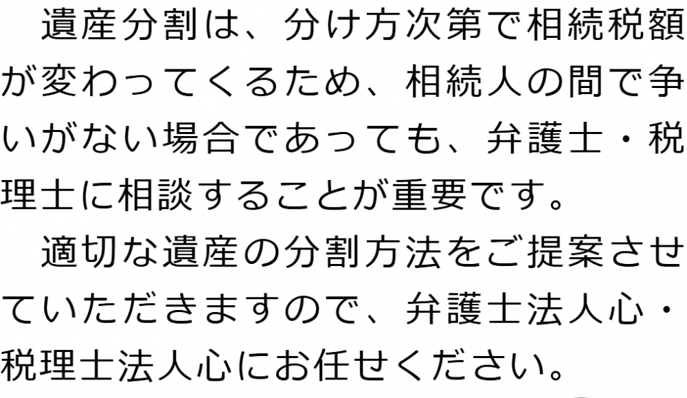トップ業務内容遺産分割 階層構造▼ 業務内容(目次) 遺産分割 業務内容(目次)業務内容トップ行政書士法人心の業務内容遺言遺産整理相続人調査相続財産調査遺産分割協議書の作成預金・貯金の解約・名義変更証券口座の解約・名義変更自動車の名義変更心グループのその他の業務内容家族信託・民事信託節税対策事業承継遺言の検認相続放棄限定承認遺産分割遺留分侵害額請求相続登記相続税申告相続税調査 受付時間 平日 9時~21時、土日祝 9時~18時 夜間・土日祝の相談も対応します (要予約) 所在地 〒210-0006 神奈川県川崎市川崎区砂子1-7-4砂子平沼ビル5F 0120-2403-39 お問合せ・アクセス・地図