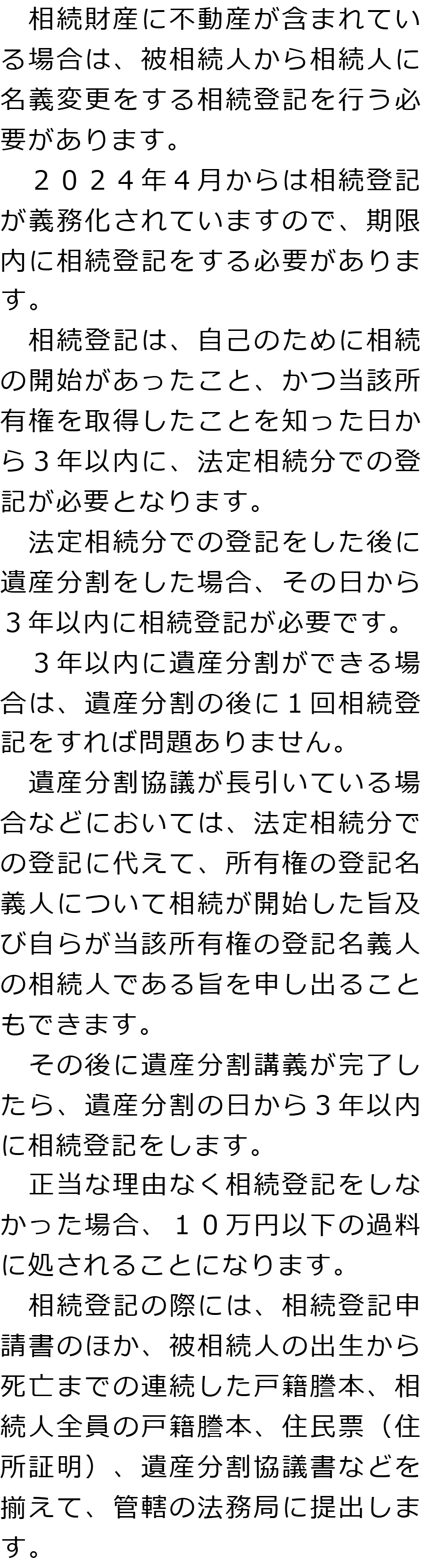Q遺産分割では何が必要ですか?AQ相続登記はどのような場合に必要ですか?AQ相続税申告はどのような場合に必要ですか?A Q&A(目次)Q&Aトップ相続手続きの必要事項に関するQ&A 受付時間 平日 9時~21時、土日祝 9時~18時 夜間・土日祝の相談も対応します (要予約) 所在地 〒210-0006 神奈川県川崎市川崎区砂子1-7-4砂子平沼ビル5F 0120-2403-39 お問合せ・アクセス・地図