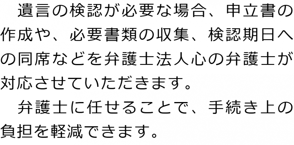 トップ業務内容遺言の検認 階層構造▼ 業務内容(目次) 遺言の検認 業務内容(目次)業務内容トップ行政書士法人心の業務内容遺言遺産整理相続人調査相続財産調査遺産分割協議書の作成預金・貯金の解約・名義変更証券口座の解約・名義変更自動車の名義変更心グループのその他の業務内容家族信託・民事信託節税対策事業承継遺言の検認相続放棄限定承認遺産分割遺留分侵害額請求相続登記相続税申告相続税調査 受付時間 平日 9時~21時、土日祝 9時~18時 夜間・土日祝の相談も対応します (要予約) 所在地 〒210-0006 神奈川県川崎市川崎区砂子1-7-4砂子平沼ビル5F 0120-2403-39 お問合せ・アクセス・地図